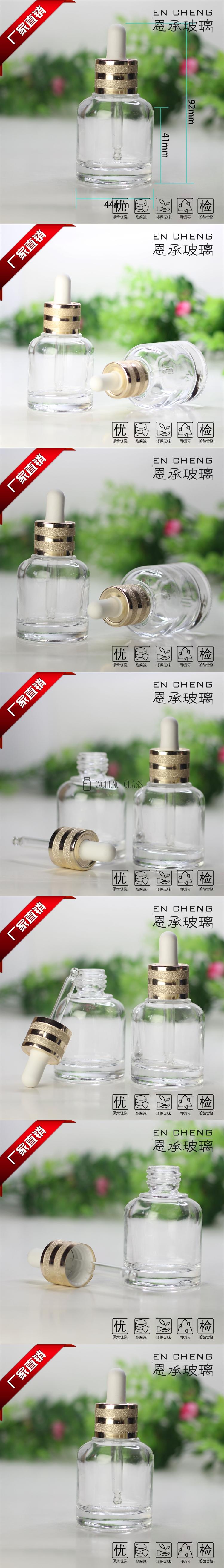 玻璃瓶廠家直供30ml乳液瓶精華液瓶化妝品包裝瓶帶滾砂電化鋁膠頭滴管蓋批發(fā)