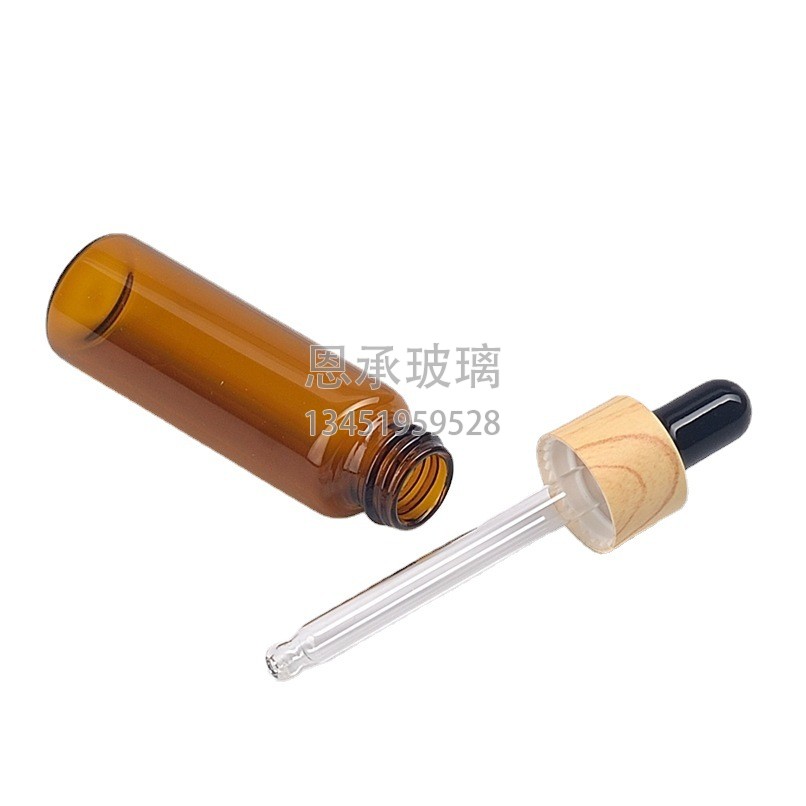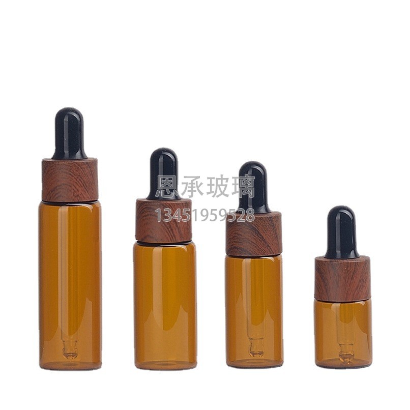簡要描述:丹陽市云陽鎮(zhèn)恩承玻璃加工廠生產批發(fā)木紋蓋木噴頭粉泵水轉印木紋滴管蓋5 10 15ml 透明茶色拉管玻璃瓶...